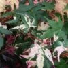 L’érable du Japon ‘Ukigumo’ est l’une des variétés d’Acer palmatum à feuillage panaché les plus originales. Doté d’un très beau port dressé, ce petit arbre arbore un magnifique feuillage printanier tricolore, moucheté de vert sur un fond blanc crème à rosé, porté par des jeunes tiges roses. Il s’unifie en vert à la fin de l’été, avant de prendre des tons de jaune d’or et d’orange à l’automne. Pas très grand, il constitue un spécimen de choix, à mettre en valeur dans un petit jardin ou dans un grand pot sur une terrasse. Redoutant le soleil brûlant et la sécheresse, il s’installe toujours à mi-ombre en sol frais, drainé, sans calcaire, mais plutôt riche.
